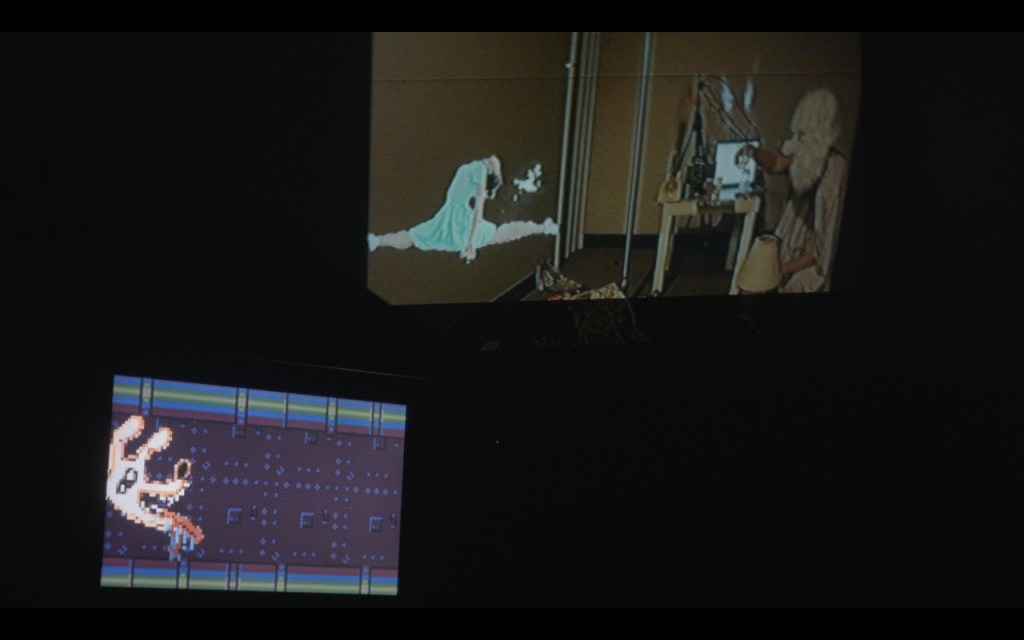 dual projection, including a sculpture.